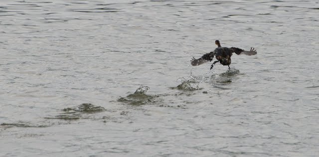 鸕鶿主要分佈在滿佈高聳樹林編號9-15號的基圍裡。繁殖於北方的鸕鶿,冬季 10月下旬至次年3月底南遷米埔避寒,這裡絕大多數屬於普通鸕鶿。全身黑色帶深灰藍,喉嚨部白色,眼睛碧綠色,臉部裸露的皮膚為黃色,屬大型群聚性鳥種, 體長82公分。善泳、潛水,每當魚群被倒入池中,群體會全部往同一方向前進潛入水中以來回尋覓或繞圈子圍捕魚類,在賞鳥屋5-10公尺的距離可以看到活魚 吞食秀,長達20公分的活魚被大群鸕鶿搶奪、吞食。飽食後,水面起飛助呈縱列群飛至周圍樹梢或土堤上停棲休息,休息時會揮動雙翅瀝乾身上的水分,也常張開 大嘴,達到散熱的目的。1月中旬後,成鳥漸換上繁殖羽,頭、頸部兩側會長出細密稍長白色絲狀羽,下脅部則出現大片白斑(雌雄皆同),3月間在棲枝上以長頸 相互摩擦求愛,並伴隨頭、尾同時上翹,喉部鼓動鳴叫的動作。